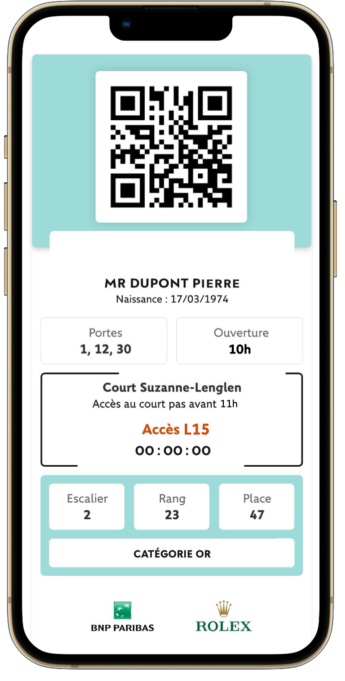 Les billets sont envoyés 72 heures avant votre session, par e-mail, au format QR code. Il vous suffit ensuite de les importer dans l’application officielle Roland-Garros.